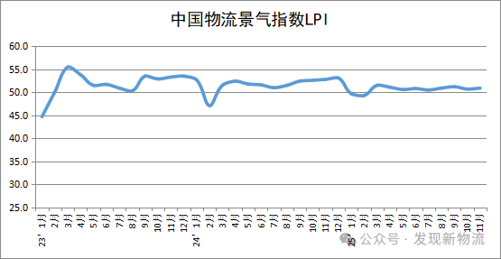 中国物流与采购联合会发布的2025年11月份中国物流业景气指数为50.9%,较上月回升0.2个百分点。